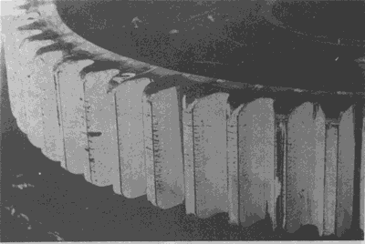 在大齒輪齒頂形成的淬火裂紋(這種裂紋通常都在這個區域出現)。