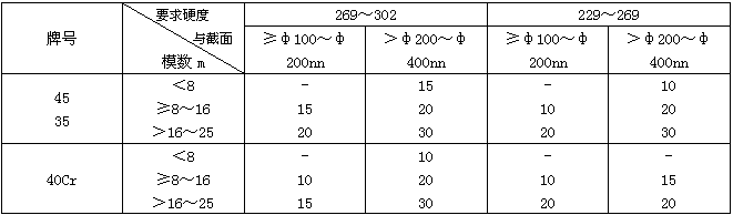 5.2.2齒輪毛坯淬火冷卻時,介質溫度應控制在:水溫≤40℃;油溫≤80℃。