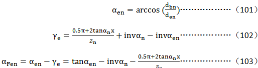 假定用一個特殊齒條的齒形系數值近似地替代内齒輪的齒形系數。該齒條的齒廓是基本條齒廓的一種改型 ,它能展成内齒輪的精確配對齒輪的法向齒廓(包括齒頂圓與齒根圓),齒頂載荷角爲αn