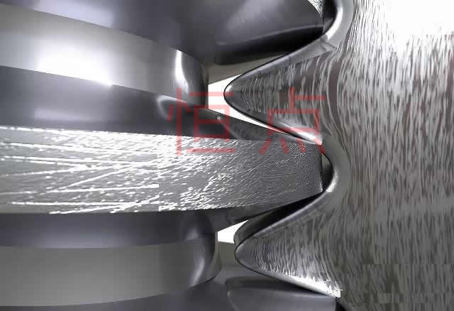 螺旋齒輪(交叉斜齒輪),它們的運動以楔形或螺旋爲主,齒面高度滑動,易於裝配,具有相同的法向徑槽,它們可以朝同一個方向,也可以朝相反的方向。