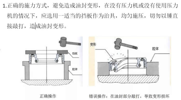 4.安裝油封時(shí),一定要使唇緣端朝向被密封的油液一側(cè),切忌反向裝配。
