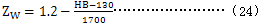 HB——齒輪副中較軟齒輪輪齒面的布氏硬度值;當HB<130時,取ZW=1.2;當HB>470時,取ZW=1;當大小輪有相同的硬度時,取ZW=1.0。