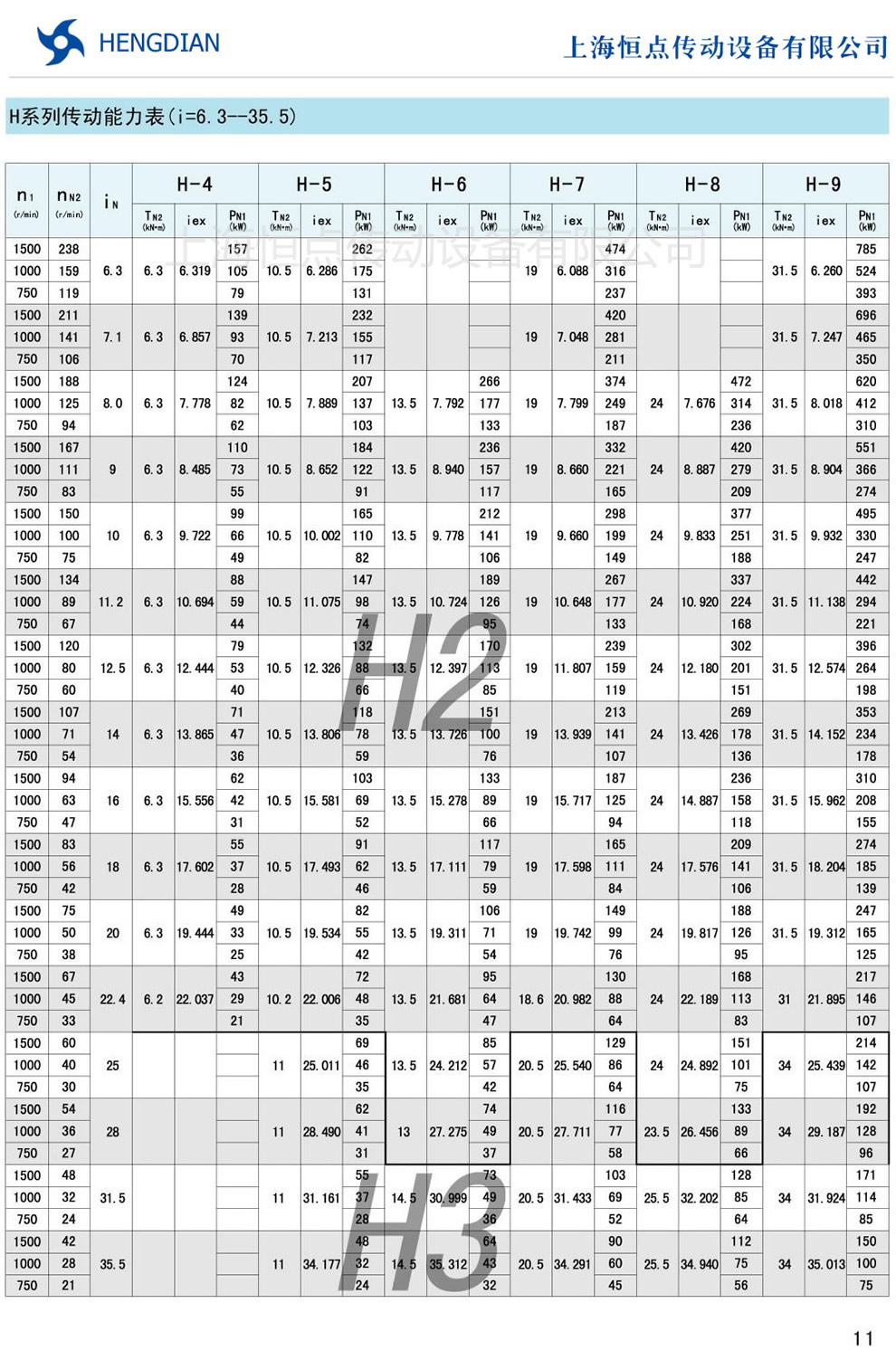 9 - B系列傳動能力表 10 - H系列額定熱容量