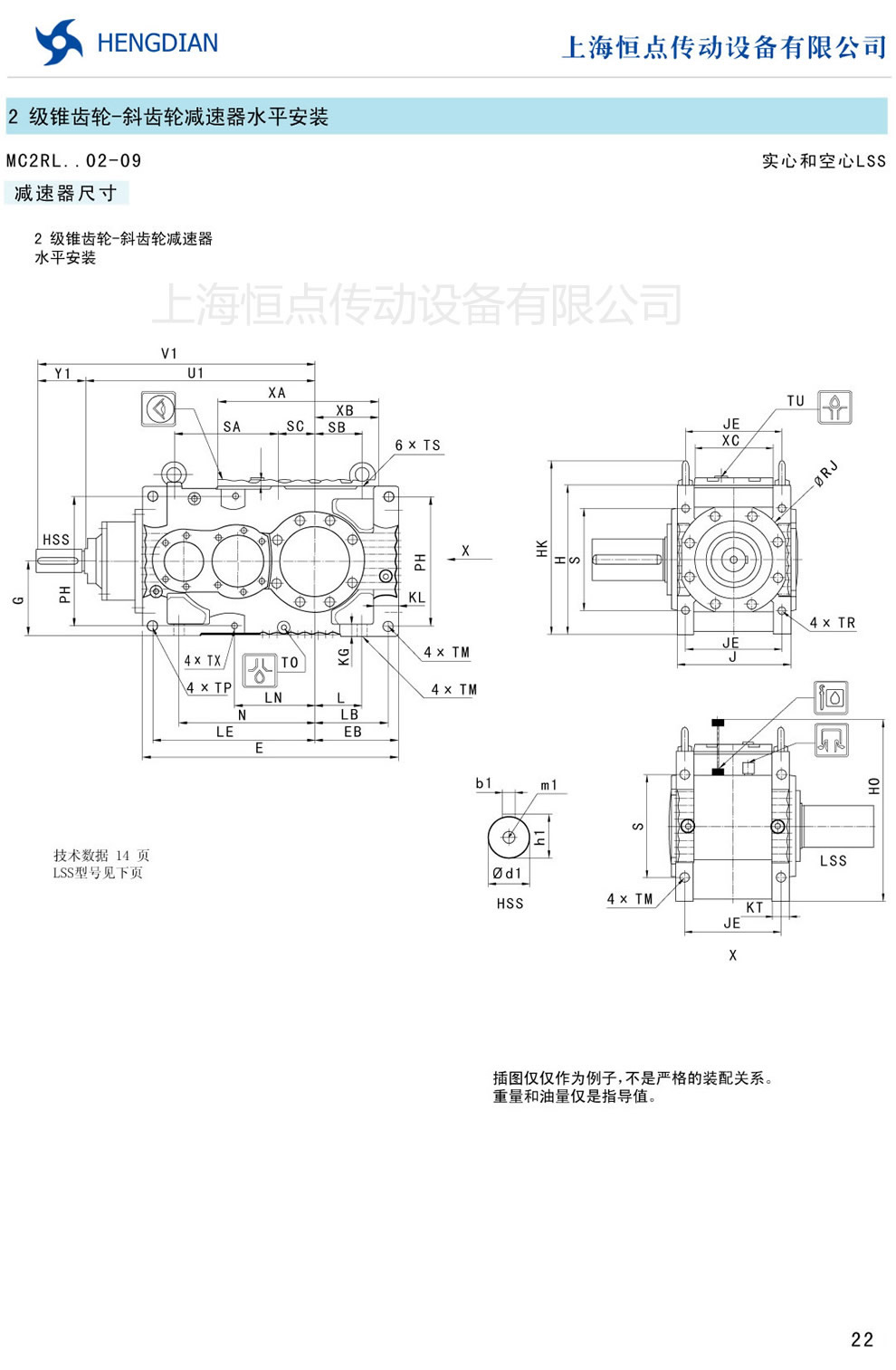 傳動能力和外型安裝尺寸/錐齒-斜齒水平安裝 - MC硬齒面減速器