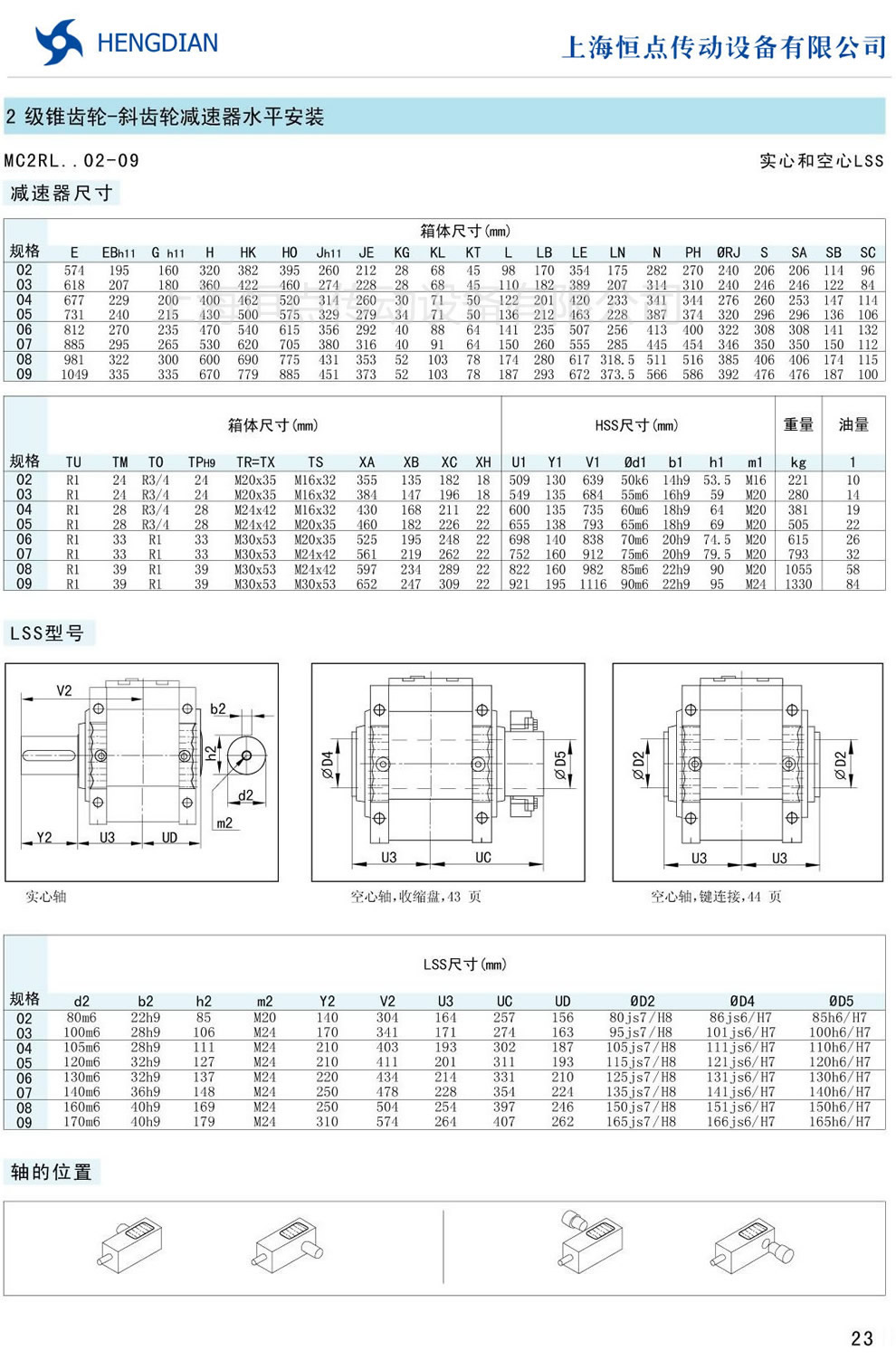 7 - 傳動能力和外型安裝尺寸/斜齒水平安裝 8 - 傳動能力和外型安裝尺寸/斜齒垂直安裝
