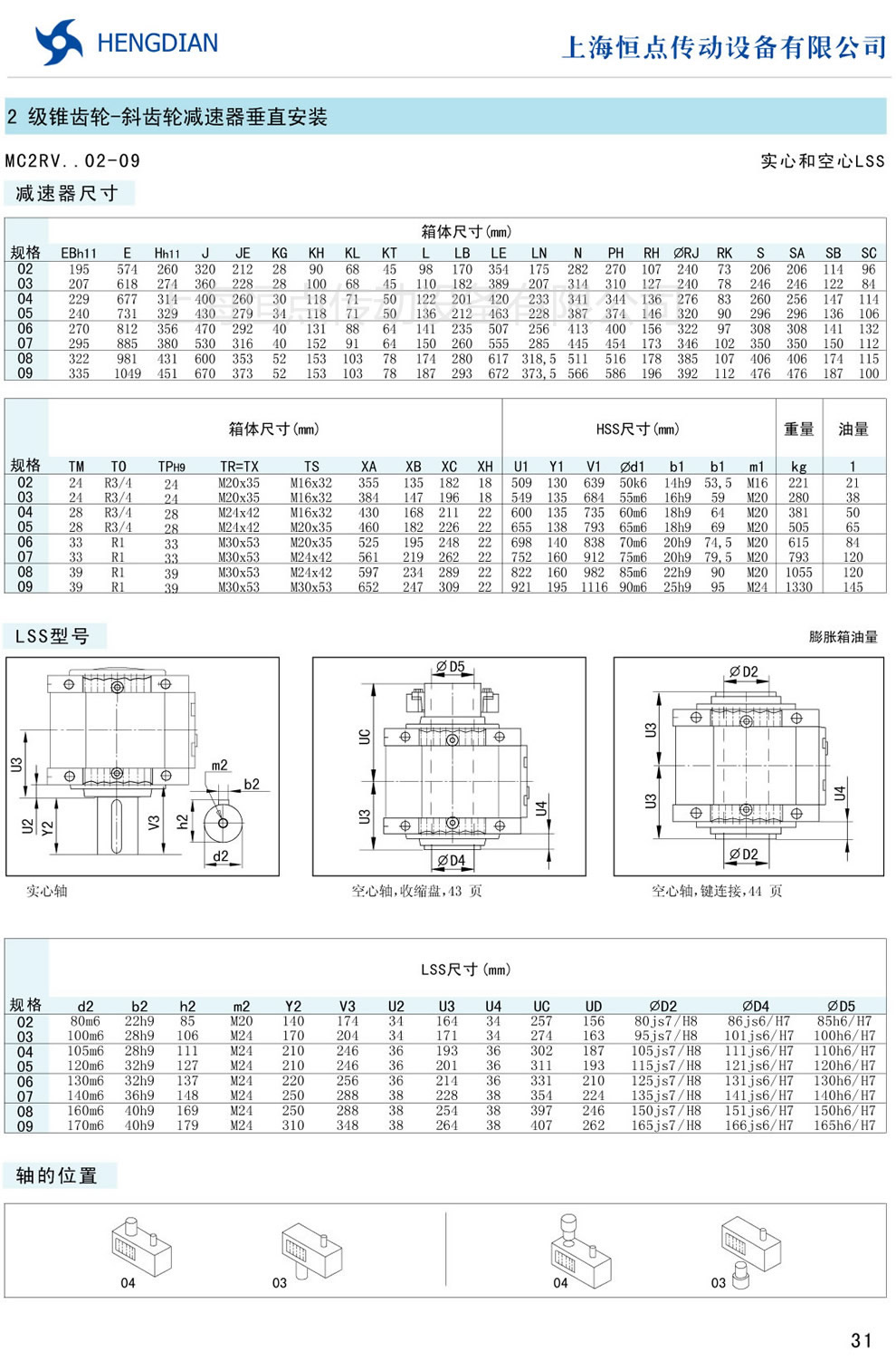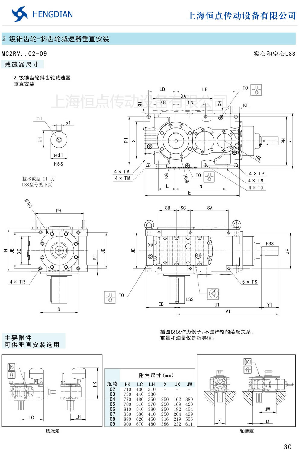 傳動能力和外型安裝尺寸/錐齒-斜齒垂直安裝 - MC硬齒面減速器